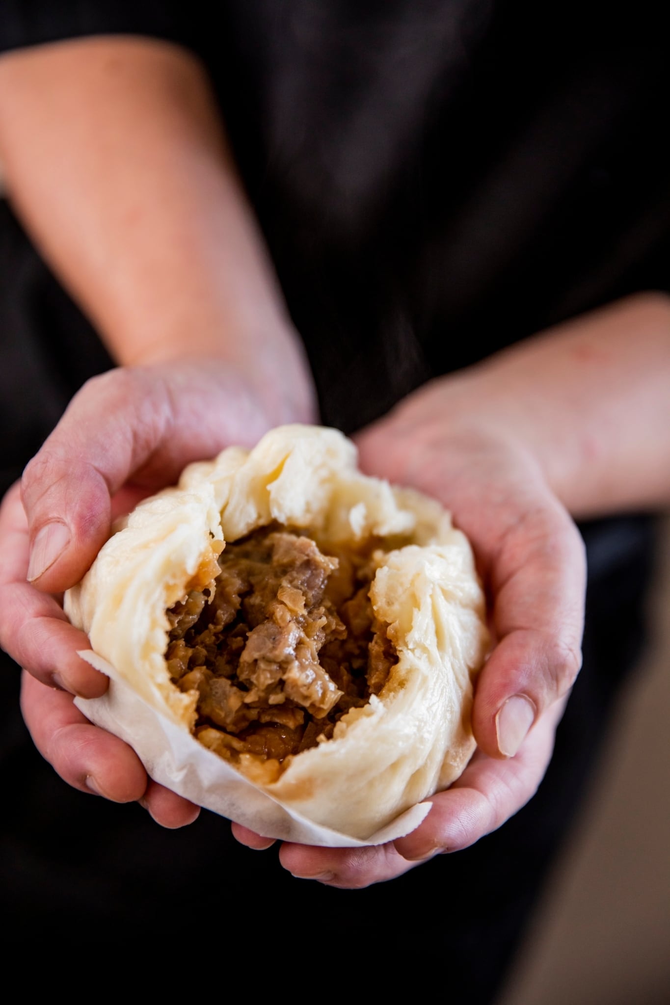 小麦粉(国内製造)、牛肉(アメリカ産)、玉ねぎ、牛乳、砂糖、オイスターソース、スパイスミックス(スターアニス、花椒、その他)、醤油、老酒調製品、ごま油、トマトケチャップ、黒胡椒/調味料(アミノ酸)、増粘剤(加エデンプン)、カラメル色素、保存料(安息香酸Na)、イースト/膨張剤、(一部に牛肉・小麦・乳成分・大豆・ごまを含む)